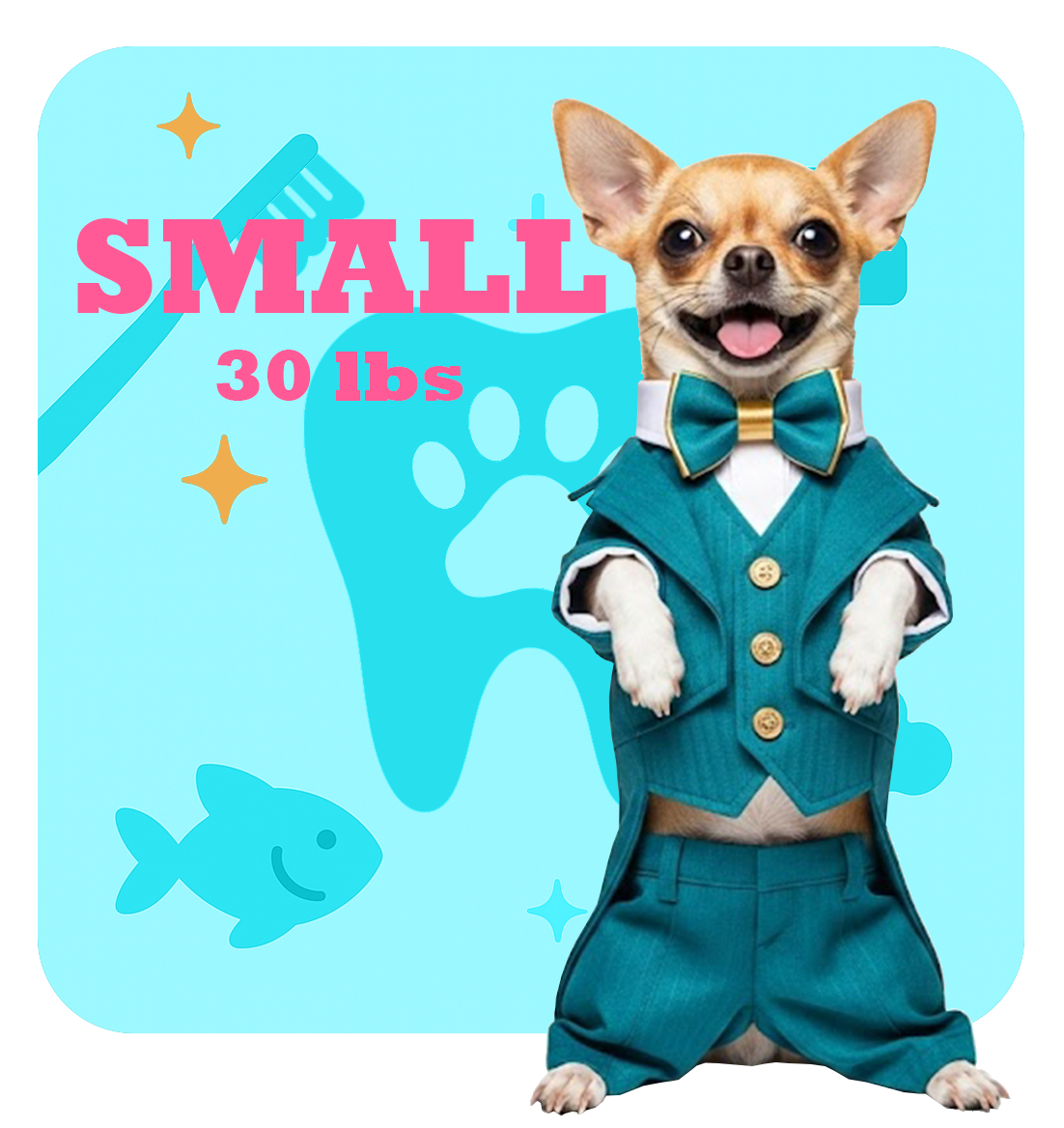 | Small | Under 30 lbs (13.6 kg) | $185 |