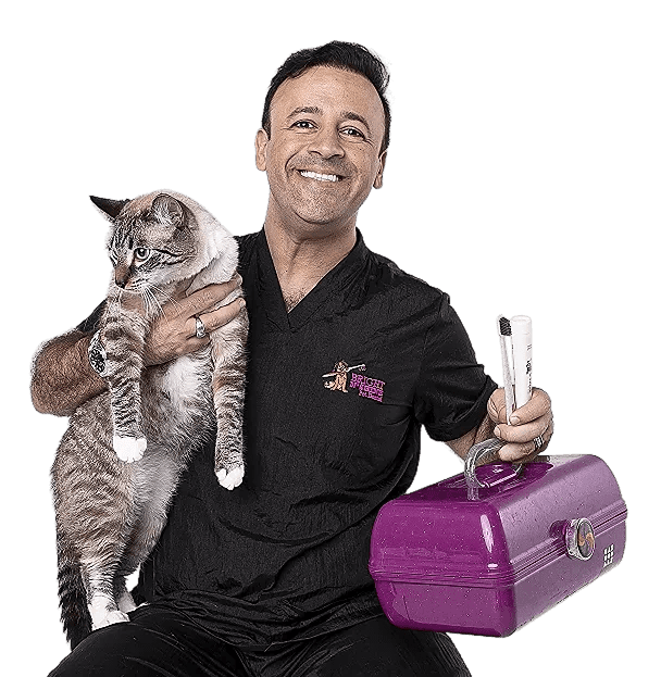 Professional anesthesia-free cosmetic pet dental cleaning, delivered to your home in our mobile spa.